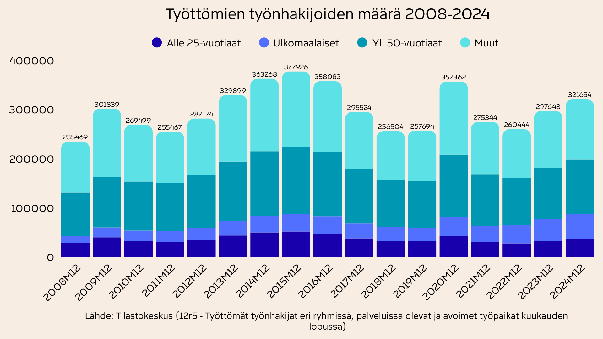 Kuva 4. Työttömien työnhakijoiden määrä 2008-2024